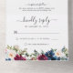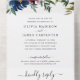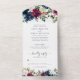 Modern Navy Blue Burgundy Elegant Floral Wedding All In One Invitation