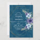 This is Navy Blue Burgundy Gold Blush Pink Wedding Invitations card. This card feature is a dark navy blue background decorated with a printed gold geometric frame that's trimmed with floral and greenery elements in shades of navy, pink, burgundy and more.