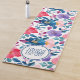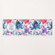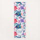 Modern Personalised Floral Pink Script Initials Yoga Mat. Pretty Pink, Peachy Pink, Navy Blue and Mauve Floral Print Pattern Yoga Mat with custom Script Name or text. Backing is plain white but can be printed for a higher price, this beautiful yoga mat is perfect for relaxing, stretching, and intensive workouts!