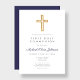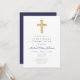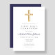 Modern Navy Blue Cross Boy First Communion Invitation.