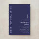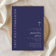 Custom Modern Navy Blue Cross First Communion Invitation.