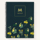 Modern Navy Blue Floral Pattern Monogram Notebook