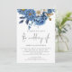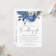 Modern Navy Blue Florals 3 Photos Wedding Invitation
