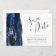 Modern Navy Blue Gold Agate 5-Photo Save the Date Invitation