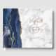 Modern Navy Blue Gold Agate Marble Script Guest Book