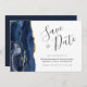 Modern Navy Blue Gold Agate Save the Date Invitation