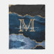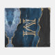 Modern Navy Blue Gold Black Monogram Script Fleece Blanket