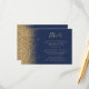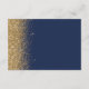 The left-hand edge of this elegant modern wedding details enclosure card features a gold faux glitter design. The customisable text combines pale gold coloured handwriting, copperplate and italic fonts on a navy blue background. The reverse side features a matching navy blue and gold glitter design.