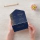 Modern Navy Blue Gold Glitter QR Code Wedding All In One Invitation