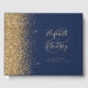 This elegant wedding guest book features a left-hand border of faux gold glitter on a navy blue background. Easily customise the gold-coloured text with the names of the bride and groom in whimsical handwriting calligraphy over a large ampersand. Add additional text of your choice to the front and spine.