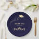 Modern Navy Blue Gold Grad Cap Graduation Paper Plate