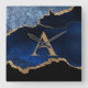 Modern Navy Blue Gold Marble Glitter Monogram Square Wall Clock