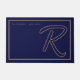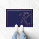 Modern Navy Blue Gold Monogram Script Family Name Doormat