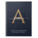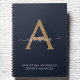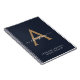 Modern Navy Blue Gold Monogram Script Name Initial Notebook