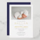Personalised Modern Navy Blue Gold Script Photo Boy Baptism Foil Invitation.