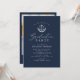 modern navy blue and white design with elegant script, law school grad party invite template. The text and colours can be edited.