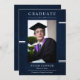 With a stylish navy blue design, this invitation lets you personalise your announcement with a memorable snapshot. Versatile in its purpose, this invitation doubles as both a graduation announcement and an invitation, making it perfect for sharing your success with friends and family in style. Make your graduation celebration truly stand out with our modern navy blue layer graduation invitation.