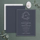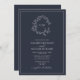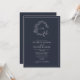 Modern Navy Blue Leafy Crest Monogram Wedding Invitation