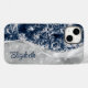 Modern Navy Blue Marble Silver Glitter Monogram Case-Mate iPhone Case
