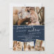 Modern navy blue minimalist script photos wedding invitation