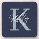 Modern Navy Blue Monogram Script Coaster
