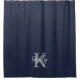 Modern Navy Blue Monogram Script Shower Curtain