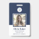 Modern Navy Blue Photo Barcode Business Logo Name ID Badge