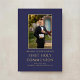 Modern Navy Blue Photo Boy First Communion Gold Foil Invitation.