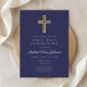 Modern Navy Blue Religious Boy First Communion Invitation