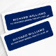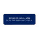 Navy blue return address labels featuring template fields for your name and address.