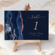Modern Navy Blue Rose Gold Agate Wedding Table Number