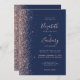 Modern Navy Blue Rose Gold Glitter Wedding Invitation
