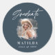 Modern minimal navy blue script photo elegant graduation announcement party decor gift. Part of a modern collection.