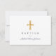 Modern Navy Blue Script Religious Boy Baptism RSVP Card