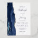 The left-hand edge of this elegant modern wedding invitation features a navy blue watercolor agate border trimmed with faux silver glitter. The customisable text combines handwriting, copperplate and italic fonts in real silver foil on a white background. The reverse side features a matching navy blue and silver agate design.