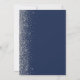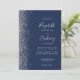 The left-hand edge of this elegant modern wedding invitation features a silver faux glitter design. The customisable text combines silver grey handwriting, copperplate and italic fonts on a navy blue background. The reverse side features a matching navy blue and silver glitter design.