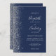 Modern Navy Blue Silver Glitter Edge Wedding Invitation