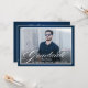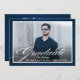 Modern Navy Blue Silver Script Photo Grad Party Invitation