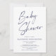 Modern Navy Blue Simple Script Baby Shower Invitation