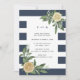 Modern Navy Blue Stripe Watercolor Lemon Invitation