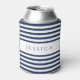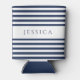 Personalised Modern Navy Blue Striped Custom Name Can Cooler
