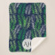 Monogrammed Tropical Print with Navy Background Sherpa Blanket