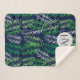 Modern Navy Blue Tropical Pattern Greenery Leaves Sherpa Blanket