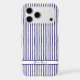 A fresh and stylish custom phone case cover for Apple iPhone and Samsung Galaxy models. Dainty hand painted watercolor vertical stripes in orange with a cut-out space for your name. Easily personalise this yourself right on the platform. Choose your favourite colour and your phone case model, and you have a beautiful customised accessory in minutes! This case is navy blue and there are several other colours available in this same design. Your name is featured in a delicate and feminine cursive typography.