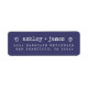 Chic, modern and simple wedding return address label with your names in white modern typography on a navy blue background with a stylish touch of hand drawn hearts. Simply add your names and address. Exclusively designed for you by Happy Dolphin Studio.