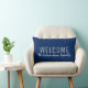 Modern navy blue Welcome Family monogram name, custom pillow.