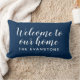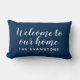 Modern Navy Blue Welcome Home Custom Last Name Lumbar Cushion