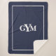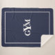 Modern Navy Blue White Framed Block Monogram Sherpa Blanket