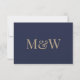 Modern Blue and White RSVP. A beautiful design featuring stylish modern navy midnight blue typography on antique gold coloured front. Back features antique gold coloured monogram initials on blue. Personalise with your text. Please visit our store, Austen & Grace, to view the full wedding suite, matching products and more, and please contact us if you require any assistance contact@austenandgrace.com