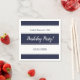 This elegant navy blue and white napkin is perfect for a modern birthday. The simple design features sleek navy blue-and-white calligraphy on a background of navy blue-and-white stripes.
